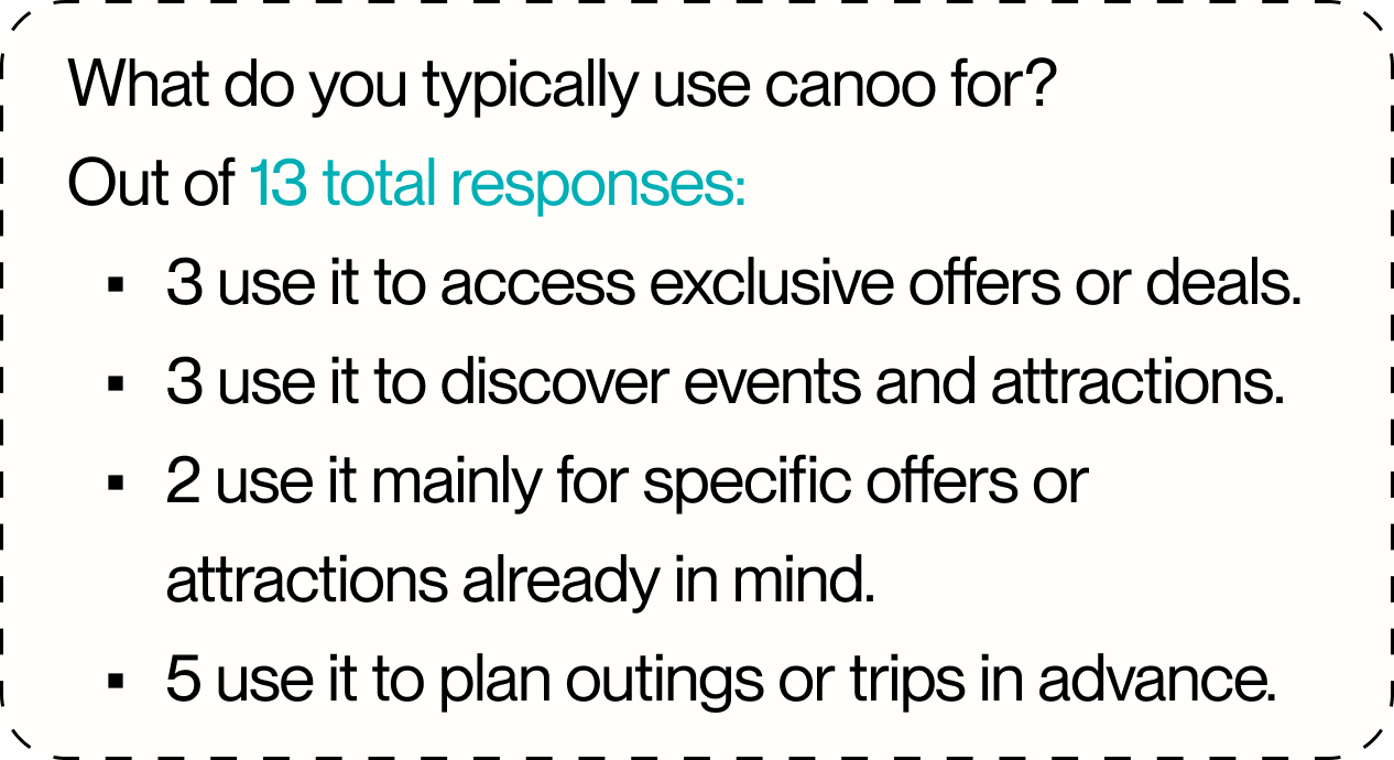 We launched an in-app quantitative survey to capture high-level patterns across Canoo’s user base, in alignment with the five research goals. Number of responses- 391.